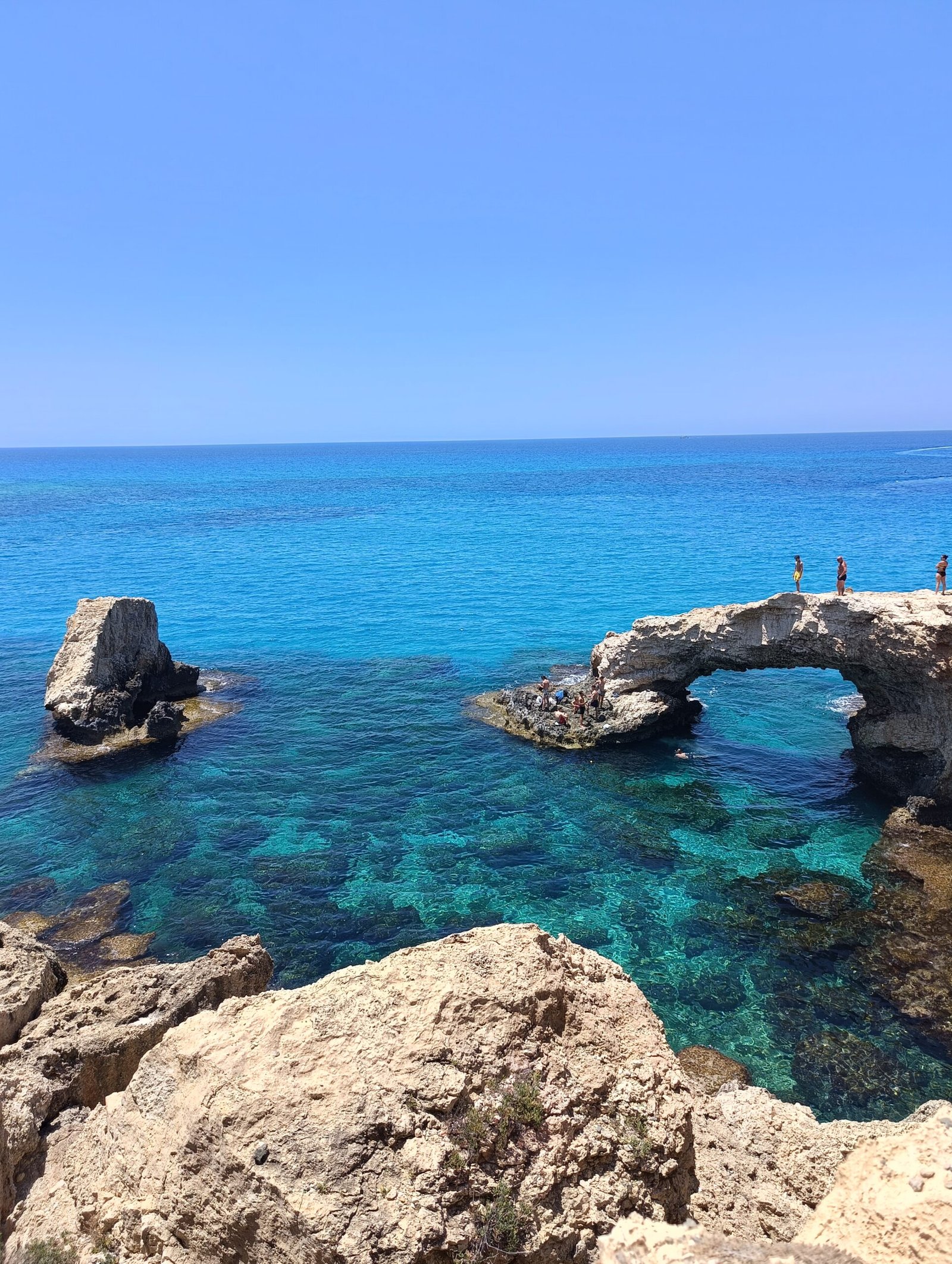 Odmah ispod je čuveni Love Bridge, prirodni kameni luk koji je zaštitni znak ostrva. Nastavile smo dalje ka Sea Caves (Morske pećine). To nisu klasične plaže, već prirodne platforme u stenama. Gledale smo hrabre ljude kako skaču u neverovatno plavu vodu, ali oprez – povratak podrazumeva pentranje uz stene, pa ovo nije za smotane! Ako idete peške, obavezno ponesite šešir i puno vode, jer hlada nema ni za lek, a put je prašnjav i osunčan.